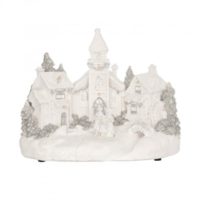 Téli házak LED 23x15,5x18cm fehér ezüst