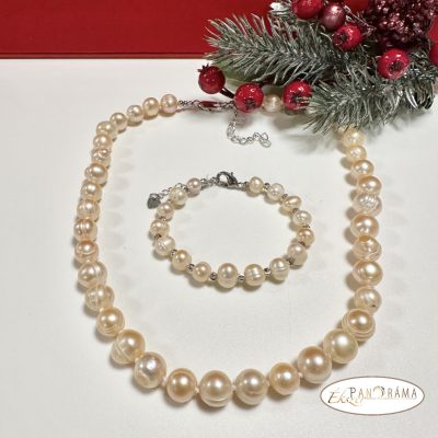 Természetes folyami gyöngy szett - nyaklánc és karkötő