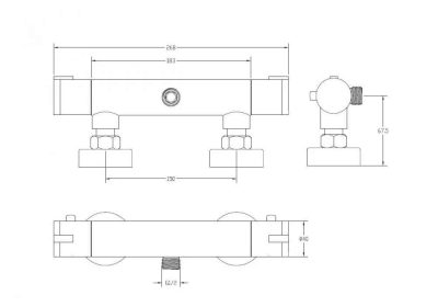 Termosztátos zuhany csaptelep, króm színű, sárgaréz övözet, egykaros, fali csaptelep.