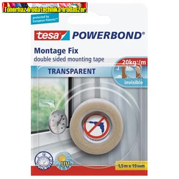Tesa PowerBOND ragasztószalag kétoldalas, rögzítószalag 19mmX1,5m átlátszó (55743)