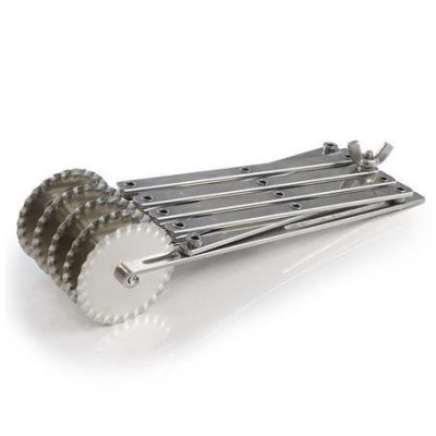 Ez a rozsdamentes acélból készült tésztavágó a sütés-főzés szerelmeseinek praktikus és kreatív eszköze. Az 5 hullámos kerék segítségével gyorsan és egyenletesen szeletelheted a tésztát, a harmonika-szerűen állítható kialakítás pedig lehetővé teszi, hogy mindig pontosan olyan szélességű szeleteket kapj, amilyenre szükséged van.