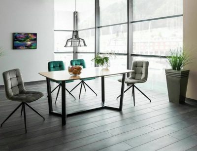 A Texo Bluvel étkezőszék a modern design és a kényelem tökéletes ötvözete. A puha, zöld bársony kárpitozás és a steppelt háttámla különleges megjelenést kölcsönöz a széknek. A fekete matt fém lábszerkezet stabil alapot biztosít, míg a forgó funkció praktikus használatot tesz lehetővé. A szék 86 cm magas, 47 cm széles és 42 cm mély, ideális méretekkel rendelkezik az étkezőasztal mellé.