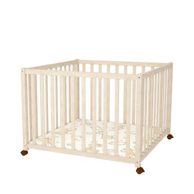 Az ergonómikus oldalrácsok segítik a baba kapaszkodását és mozgásfejlődését, a letisztult, természetes fa felületek pedig harmonizálnak bármely otthon stílusával.