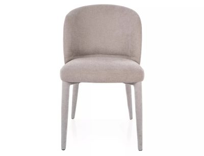 A szék teljes egészében szövettel borított váza harmonikus megjelenést kölcsönöz, a lekerekített formák pedig lágy, barátságos hangulatot teremtenek a térben. Az étkezőszék strapabíró anyagokból készült, így hosszú évekig megőrzi szépségét.
