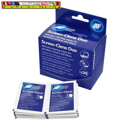 Tisztítókendő, képernyőhöz, 20 db nedves-száraz kendőpár, AF "Screen-Clene Duo"
