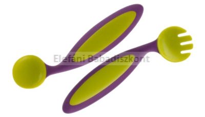 - Az evőeszköz bármely irányba lehet hajlítani, attól függően, hogy a baba honnét fogadja el az ételt, illetve melyik kezével fogja meg az evőeszközt.
