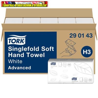 TORK Singlefold 290143 Kéztörlő, Z hajtás, 2 rétegű, 250 lap/cs, H3 rendszer, Advanced, fehér 15cs/dob