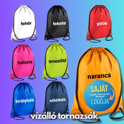 Vízálló divatos tornazsák 8 színben, tartós emblémázással.