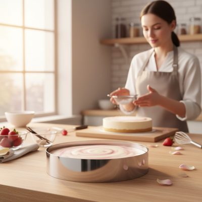 A sima belső felületnek köszönhetően a torták oldala tökéletesen egyenletes marad. A precíz hegesztés biztosítja, hogy a karika illesztése pontos legyen, így a krémek és mousse rétegek nem szivárognak ki.