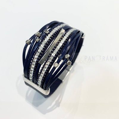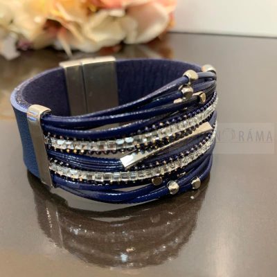 Trendi, műbőr mágneszáras karkőtő. Sötétkék színű