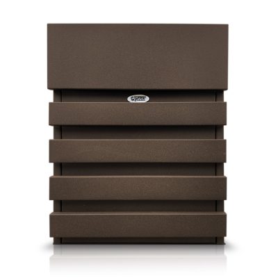 Dekor csíkokkal díszített, modern kerítésekhez illeszkedő stílusú postaláda,