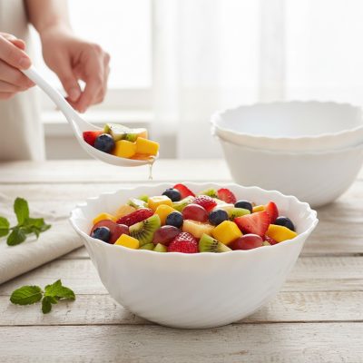 A Trianon salátás tálka egy elegáns és praktikus kiegészítője lehet bármely konyhának vagy étkezőasztalnak. A tálka 0,27 literes űrtartalommal rendelkezik, ami ideálissá teszi kisebb adagok, például saláták, desszertek vagy előételek tálalására. A 12 cm-es átmérőjű tálka kompakt mérete miatt könnyen tárolható, és helytakarékos megoldást kínál a mindennapi használatra.A Trianon salátás tálka kiváló minőségű anyagokból készült, ami biztosítja a tartósságot és a hosszú élettartamot. A tálka felülete sima és könnyen tisztítható, akár kézzel, akár mosogatógépben. A letisztult dizájn és a klasszikus forma bármilyen stílusú terítékhez illeszkedik, legyen az modern vagy hagyományos.Ez a tálka nemcsak funkcionális, hanem esztétikus is, így tökéletes választás lehet különleges alkalmakra vagy mindennapi használatra egyaránt. A Trianon salátás tálka ideális választás azok számára, akik értékelik a minőséget és a stílust az asztalukon.