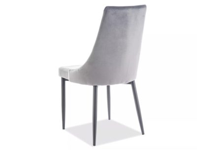 A Trix B bársony étkezőszék a modern design és a kényelem tökéletes ötvözete. A szék háttámlája egyedi rombusz mintázattal díszített, amely különleges megjelenést kölcsönöz. A puha, szürke bársony kárpitozás és a matt fekete fém váz harmonikus kontrasztot alkot. A szék 89 cm magas, 49 cm széles és 47 cm mély, ideális méretekkel rendelkezik az étkezőasztal mellé.
