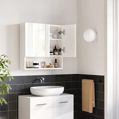 • VILÁGÍTSA FEL FÜRDŐSZOBÁJÁT – Díszítse a fürdőszoba üres falait ezzel a tükrös szekrénnyel. Adjon egy kis frissességet fürdőszobájának a magasfényű fehér ajtóval, a polcokkal és a tükör elegáns edzett üvegével