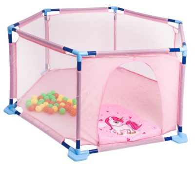 A járóka öt fala hálóból készült, ami lehetővé teszi a baba megfigyelését játék közben. Az egyik fal cipzárral rendelkezik a könnyű be- és kilépés érdekében. A járókához 40 színes golyó tartozik.