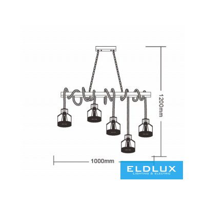 UNIVERSO Kender kötél csillár 5xE27 IP20 1000x1200mm fekete