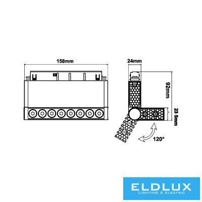 • UNIVERSO Mágneses sínbe szerelhető állítható spot Lámpa DC:48V 10w 800lm 3000k RA90 IP20 Fekete 158x45x24mm