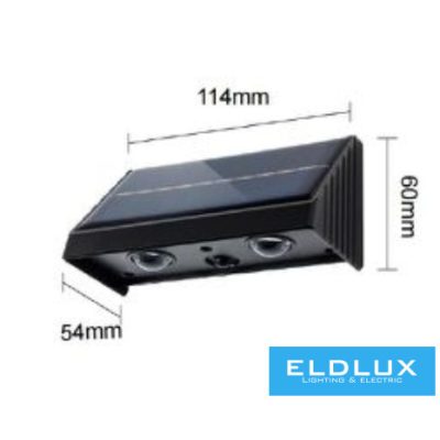 • UNIVERSO Solar fali lámpa 5V 0.8w 30lm 6500k IP65 fekete 142x80x73mm