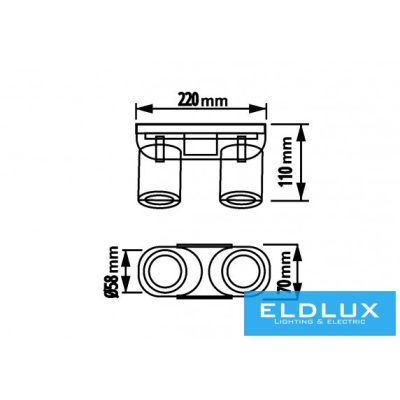UNIVERSO Spot lámpatest 2xGU10 Max.35w IP20 220x70x110mm Fekete/Arany