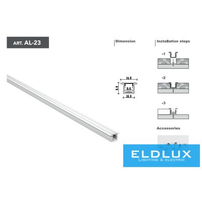 • UNIVERSO süllyesztett aluprofil matt fehér fedlappal+végzáró 2m