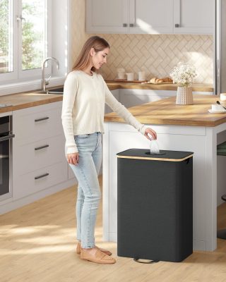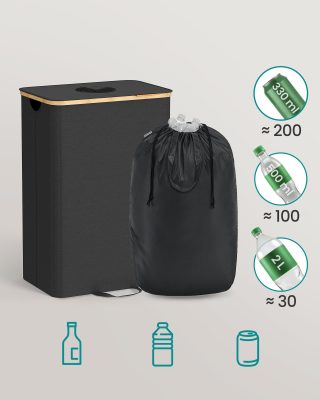 Üres palackgyűjtő konténer, 95 l, lyukas fedéllel, belső táskával, fogantyúkkal, konyhai, tintafekete és natúr bézs színben