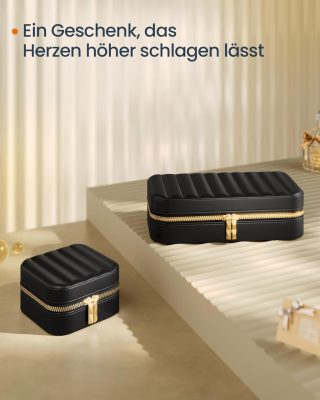 • Hordozható és kényelmes: Vidd magaddal a stílusodat ezzel a kis ékszertartóval, melynek mérete 20,5 x 6 x 10,5 cm—tökéletesen elfér bármelyik táskában vagy bőröndben. Praktikus tükörrel rendelkezik sminkfrissítésekhez, és sima cipzárral könnyű hozzáférést biztosít