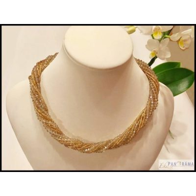 • Üveg kristály gyöngy nyaklánc 2 in 1 arany
