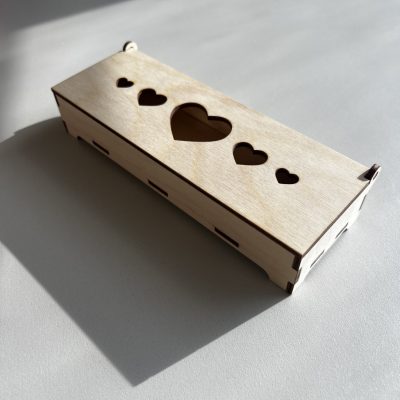 Egyszerű, természetes és időtálló lézervágott fa ajándékdoboz finom kivágásokkal. Apró meglepetések, toll, ékszer vagy személyes ajándék stílusos csomagolására ajánljuk.