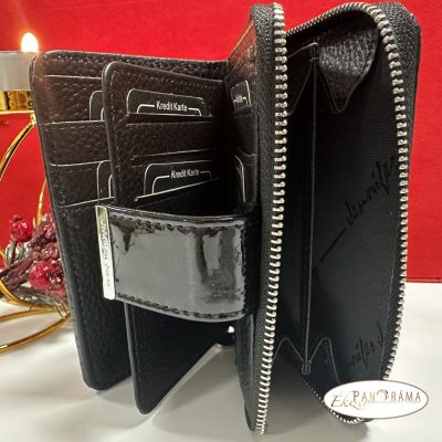 Női bőr pénztárca Rfid védelemmel- lakkbőr fekete finom mintázattal