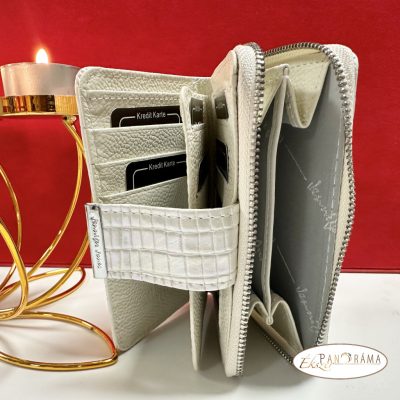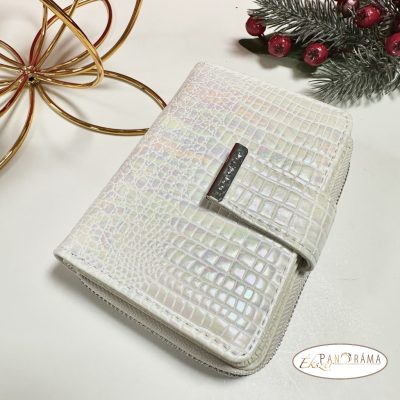 Női bőr pénztárca Rfid védelemmel- lakkbőr gyöngyház színű krokodilbőr mintázattal