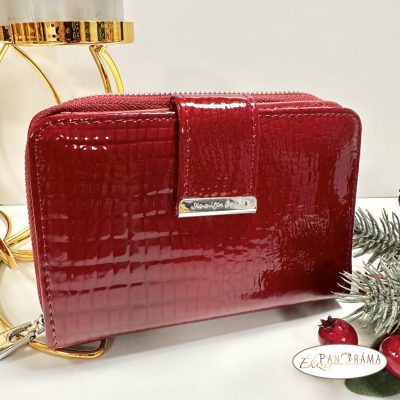 Női bőr pénztárca Rfid védelemmel- lakkbőr meggy színű krokodilbőr mintázattal