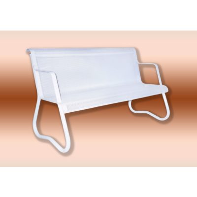 Várótermi pad perforált lemezes karfás: acélcső vázszerkezet, perforált lemez palást. Felülete elektrosztatikus porszórással festett. A perforálás csökkenti a hidegérzetet, ezért kényelmes pihenést nyújt használóinak. Alapszín fehér, vagy igény szerint a RAL színkódok szerint választható.