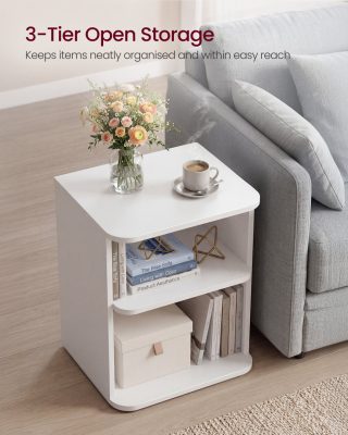 VASAGLE éjjeliszekrény, Snapsemble – szupergyors összeszerelés, 3 szintes lerakóasztal, nyitott polcok, alacsony, hálószobába, nappaliba, kis helyiségekbe, 30 x 35 x 45 cm, felhőfehér