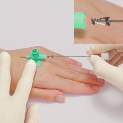 • A hagyományos intravénás katéternél megszokottal azonos szúrási technika