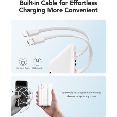 Ez a Powerbank tökéletesen alkalmas a piacon kapható összes eszköz töltésére, mivel mindkét kábel (USB Type-C és Apple Lightning) megtalálható benne.