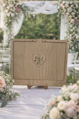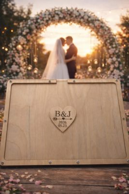 Az egyedi gravírozott téglalap alakú vendégkönyv igazán különleges kiegészítője lehet bármilyen esküvőnek. A fa keretes vendégkönyv gravírozott felirattal készül, így még személyesebb emléket őriz meg. A vendégek fa szívekre írhatják a nevüket, jókívánságaikat, majd bedobhatják a téglalap formájú keretbe. A végeredmény egy szívhez szóló, egyedi dekoráció, amit örökre megőrizhettek. Tökéletes választás, ha valami különleges, gravírozott és maradandó vendégkönyvet szeretnétek az esküvőtökre. Egyedi megoldás eljegyzésre, évfordulóra vagy bármilyen különleges alkalomra.