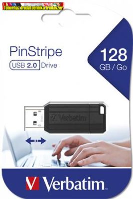 VERBATIM Pinstripe Pendrive, 128GB, USB 2.0, fekete