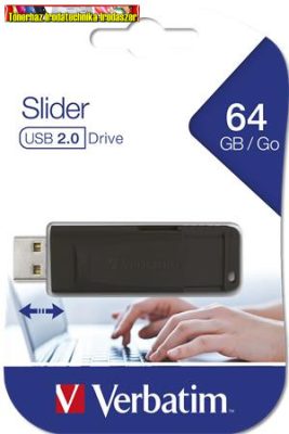 VERBATIM Slider Pendrive, 64GB, USB 2.0, fekete
