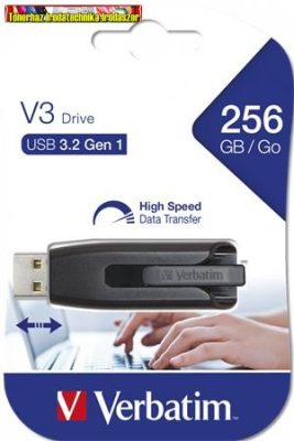 VERBATIM V3, fekete-szürke Pendrive, 256GB, USB 3.2, 80/25 MB/s,