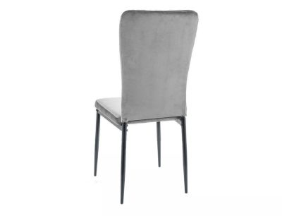 A Vigo bársony étkezőszék a modern elegancia és kényelem tökéletes ötvözete. A szék magas háttámlával és puha, szürke bársony kárpitozással rendelkezik, amely kellemes tapintású és strapabíró. A fekete matt fémváz karcsú vonalai és a függőleges varrások a háttámlán kifinomult megjelenést kölcsönöznek a széknek. A 94 cm magas szék ideális méretű az étkezőasztal mellé.