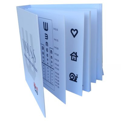 A kisgyermekek látásélesség-vizsgálatára tervezett lapok (kártyák) gyűrűskönyv formában.