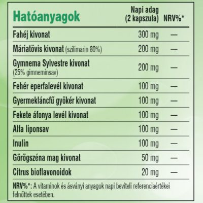 Fehér eperfalevél kivonat: Lassítja a szénhidrátok lebontását, ezáltal csökkenti a vércukorszint hirtelen emelkedését.
