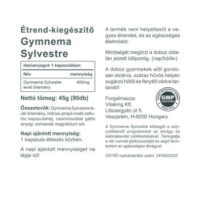 Vitaking Gymnema Sylvestre 400mg kapszula fogyasztási javasolt