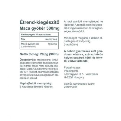 Természetes növényi kiegészítés, kapszulánként 500mg Maca (Lepidium meyenii 10:1 kivonat) gyökér tartalommal!