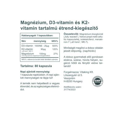 • Vitaking MagneTrio D3+K2+ Magnézium biszglicinát (80) kapszula