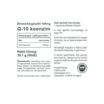 A Vitaking Q-10 gélkapszulánként 100 mg hatóanyagot tartalmaz.