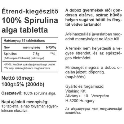 • Vitaking Spirulina alga 500mg (200) tabletta