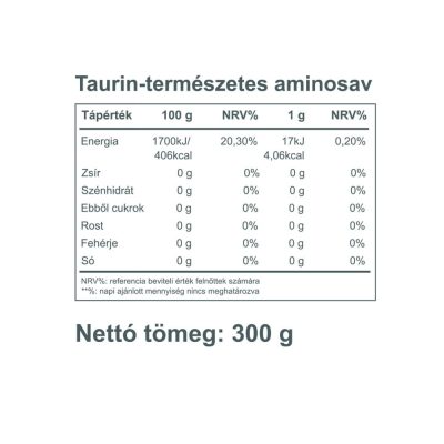 Összetevők: Taurin (99,5%), csomósodást gátló anyag: szilicium-dioxid (0,5%).