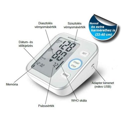 • Vivamax Felkaros vérnyomásmérő (extra nagy méretű mandzsettával)
