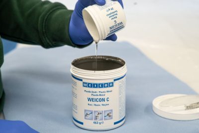 • WEICON C kétkomponensű ALUMÍNIUM töltött folyékony epoxi gyanta - 0,5 kg